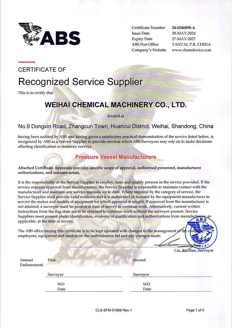 近日威?;C(jī)械有限公司(以下簡(jiǎn)稱“威海化機(jī)”)壓力容器產(chǎn)品成功獲得了美國(guó)船級(jí)社(ABS)頒發(fā)的權(quán)威認(rèn)證,是繼復(fù)合板產(chǎn)品ABS認(rèn)證后拿到第二張ABS證書(shū),這標(biāo)志…