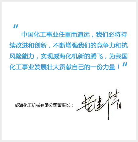 威海化工機(jī)械有限公司自成立以來始終遵循著 "以人為本、開拓創(chuàng)新" 的企業(yè)精神,讓員工發(fā)揮主人翁精神,為每個(gè)員工提供實(shí)現(xiàn)自我價(jià)值的平臺(tái);堅(jiān)守”以客戶的期望制造產(chǎn)品,以客戶的眼光挑剔質(zhì)量"的管理方針,設(shè)身處地為客戶著想,自覺維護(hù)客戶利益,這使我們在激烈的市場競爭中脫穎而出,贏得了社會(huì)的肯定和客戶的信任。